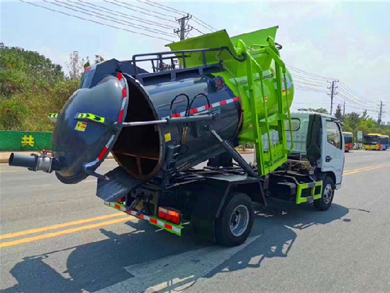 载质量对应关系为(kg):5250/1980。 3、防护材料:Q235B碳钢,连接方式:左右侧面及后下部防护均采用焊接连接,后下部防护断面尺寸(mm):120×50,后下部防护离地高度(mm):380。 4、ABS型号/厂家:ABS/ASR-12V-4S/4M/襄阳东风隆诚机械有限责任公司。 5、专用装置:侧装垃圾桶提升装置,主要用于餐厨垃圾收集及转运。 6、随底盘选装驾驶室,该车可选装爬梯,可选装带真空吸污装置上装外观,提升机外观,视窗后置。 |