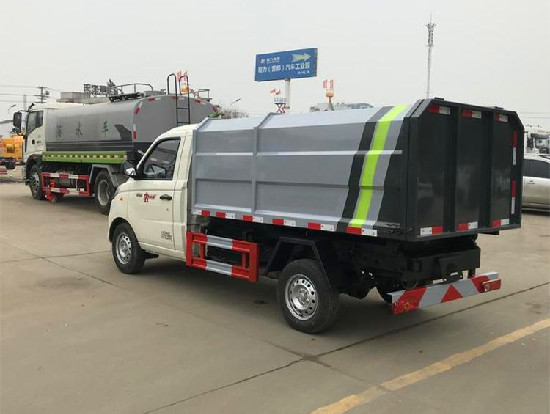 | 专用功能说明: 国六祥菱V1,底盘采用祥菱V-1600车身,国六东安DAM15KR发动机、115马力、DAT18R-5挡变速箱、102后桥、175R14轮胎、ABS、电动助力转向、前稳定杆、单轮,油刹,电动门窗中控锁遥控钥匙。 上装配置:挂桶式垃圾车采用链条和液压油缸联动装置,实现对垃圾斗提升和翻转,将多处垃圾斗内的垃圾自动收入车厢,并到目的地一次性自卸出来,具有全密封,自装自卸功能,液压操作.。挂桶式垃圾车是一个车能配几十个垃圾桶,能实现一台车与多个垃圾桶联合作业,循环运输,充分提高了车辆的运输能力,特别适用于短途运输,由密封式垃圾厢、液压系统、操作系统组成。举升油制缸(2支)垃圾厢可自吊上放下,上下一次工作循环时间≤50S。如环卫部门对城镇垃圾的清理、运输等。适用于全国通用标准的垃圾桶:铁桶、塑料桶,并大量供应垃圾挂桶。 挂桶式垃圾车(以下简称垃圾车)是用于城镇内的垃圾收集、转运、卸料作业的专用车辆。 该车主要用于城镇垃圾的垃圾收集、转运和卸料。操作开提升**阀将垃圾桶随提升机向上升起并翻转倾斜,桶内垃圾被倒入车厢内完成垃圾单次装载,反向操作提升**阀,垃圾桶随提升机而放下;完成垃圾装载后再进行倾卸时,操作自卸**阀,垃圾箱绕后翻转轴倾斜体举,箱体后门打开,垃圾倾卸出箱体;起该车由液压**系统来完成该车的提升机的上升和下降及垃圾的自卸功能,降低了工人的劳动强度和改善了工作环境。该垃圾车的收运方式是目前国内广泛采用的垃圾收集转运方式,其专用装置的功能均以汽车发动机为动力,通过液压机构手动或电控、气控来实现。车辆的箱体采用优质炭钢板全密封焊接结构,具有强度高、重量轻,防尘、防溢不产生二次污染等优点