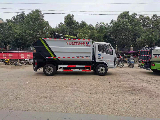 | 专用功能说明: 国六东风多利卡D6无泄漏后装式压缩垃圾车整车型号CLW5078ZZZ6型自装卸式垃圾车,总质量:7360kg,额定载质量:4150kg,额定载质量:2080kg,箱体容积:7立方,轴距:3308mm,国六东风多利卡D6底盘,朝柴130马力发动机,五档变速箱,19款豪华驾驶室,空调,中控锁,电动升降玻璃,多功能方向盘,钢丝胎,ABS。 国六东风多利卡D6无泄漏后装式压缩垃圾车采用系统**模块按照CE标准,具有多重保护措施,确保操作人员安全,杜绝二次污染,箱体采用连续焊接,保证运输没有“滴水漏料”现象,装载量大,箱体容积为7方,轻量化设计,刮板压缩,高位卸料,可与其它设备对接,压缩垃圾站和其它车辆配合工作可提高工作效率,降低运营成本,垃圾分类的好帮手。 国六东风多利卡D6无泄漏后装式压缩垃圾车操作演练过程分解图片: 1、垃圾桶置于车辆后方上料机构处,垃圾桶**压桶限位处