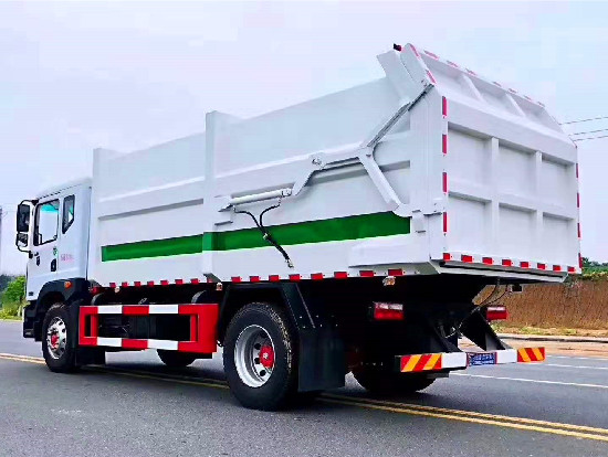 | 专用功能说明: 一、底盘配置:国六排放、4500轴距、 多利卡D9驾驶室2315/排半、 发动机康明斯B6.2NS6B210、 变速箱东风6档箱 、295/80R22.5轮胎 、4.5/10德纳桥、 250双层车架、 空调电动窗 、ABS 、气刹 、排气制动。 二、上装配置:新式弧形厢体采用国标钢板制作边4底5,内控尺寸5400*2200*1650,容积19.6立方米。液压举升式后门开启,知名液压系统及**系统。 三、压缩式对接垃圾车性能特点: 城乡垃圾压缩站的垃圾清运。垃圾压缩站对垃圾进行收集、压缩,然后用对接垃圾车进行垃圾转运,压缩垃圾车进入压缩站后,垃圾车箱体后门向上旋转开启,垃圾车后门与压缩箱后门对接,之后垃圾块被压缩箱内的推板水平推进到垃圾车箱体内,垃圾车后门将垃圾运到垃圾处理地进行倾卸。该车由液压**系统来完成该车的后门的开启和关闭及自卸功能,降低了工人的劳动强度和改善了工作环境。该垃圾车的收运方式是目前国内广泛采用的垃圾压缩站垃圾转运方式,可以实现一车多站,大大降低了配备成本和空间等等;其专用装置的功能均以汽车发动机为动力,通过液压机构手动或电控、气控来实现。车辆的箱体采用优质炭钢板全密封焊接结构,具有强度高、重量轻,不产生二次污染等优点。 四、压缩式对接垃圾车性能特点: 1、该车操作系统是由液压**系统来完成,**方式可以为手动或电启控。 2、该垃圾车的收运方式是目前国内广泛采用的垃圾压缩站垃圾转运方式,可以实现一车多站,大大降低了配备成本和空间等等。 3、其专用装置的功能均以汽车发动机为动力,通过液压机构手动或电控、气控来实现。 4、压缩垃圾站在将垃圾压缩成块后将垃圾箱体垂直举起,并打开压缩箱排泄门,这时垃圾车箱体后门向上旋转开启,垃圾车后门与压缩箱后门对接,之后垃圾块被压缩箱内的 推板水平推进到垃圾车箱体内,完成垃圾装载后关闭垃圾车后门,将垃圾运到垃圾处理 地进行倾卸。 5、采用国标厚度Q235碳钢钢板,边四底五骨架车厢,骨架车厢按照耐受压力**大的外框式优化设计制作。 6、纵、横梁骨架及顶板骨架全部采用优质钢材压、拉成型。 7、配备液压装置,驾驶员在驾驶室内完成垃圾装卸工作。