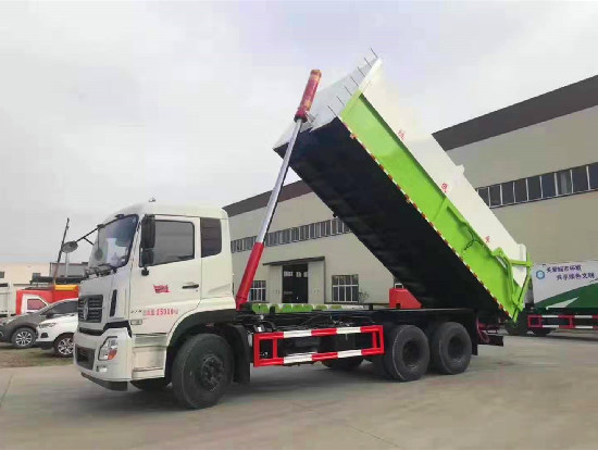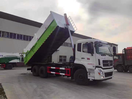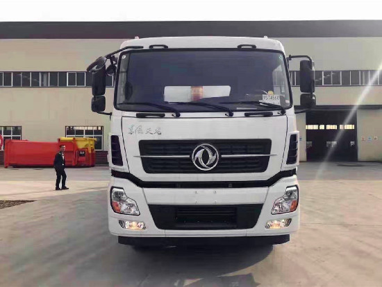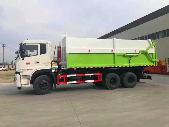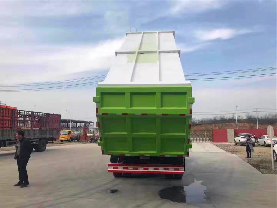 对接垃圾车的使用范围: 该车一般与压缩垃圾站结合使用,也可以单独使用,压缩垃圾站垃圾箱的垃圾压缩成块,垃圾箱举起,排泄门打开,与垃圾车门对接,将成块的垃圾推入垃圾车内,实现一车多站,转运和输送迅速,防止二次污染。广泛用于各环卫市政及大型厂矿部门运载各种垃圾,亦可运输灰、砂、石、土等散装建筑材料,也可以在矿山或煤矿中运送矿石或煤。 底盘配置:东风天龙,八档变速箱,康明机290马力,11.00R20轮胎.方向助力,中控锁,电动玻璃,ABS,空调。 罐体采用Q345不锈钢板材制作而成,边5mm底6mm,方形箱体,箱体体底部安装液压油缸实现箱体举升自卸,后盖采用液压开启、锁紧。操作方式为室外手动液压操作。